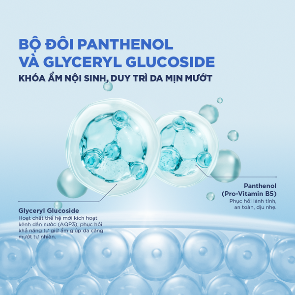 - Glycerin Glucoside: Hoạt chất thế hệ mới phục hồi khả năng tự giữ ẩm, để da căng mướt tự nhiên suốt cả ngày dài.
